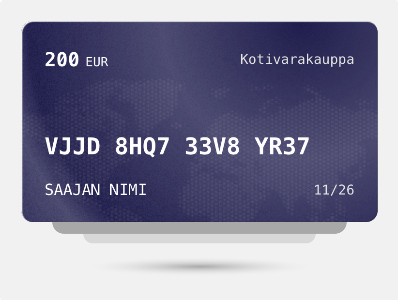 Ostatko lahjaa toiselle, mutta et ole varma mitä antaa? Anna lahjaksi valinnanvapaus lahjakortilla. Lahjakortit toimitetaan sähköpostitse ja sisältävät lunastusohjeet.